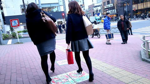 黒タイツっぽいですが、寒めの時期によくありがちな「黒パンストやタイツだからミニスカートが堂々と履ける」といった女の子かと思います。