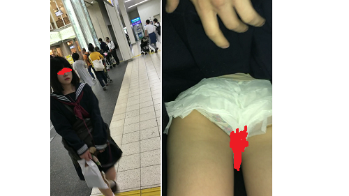 しかも隙間があるんでスカートめくって下から撮ってるんで白の木綿パンツがばっちり見えています(笑)