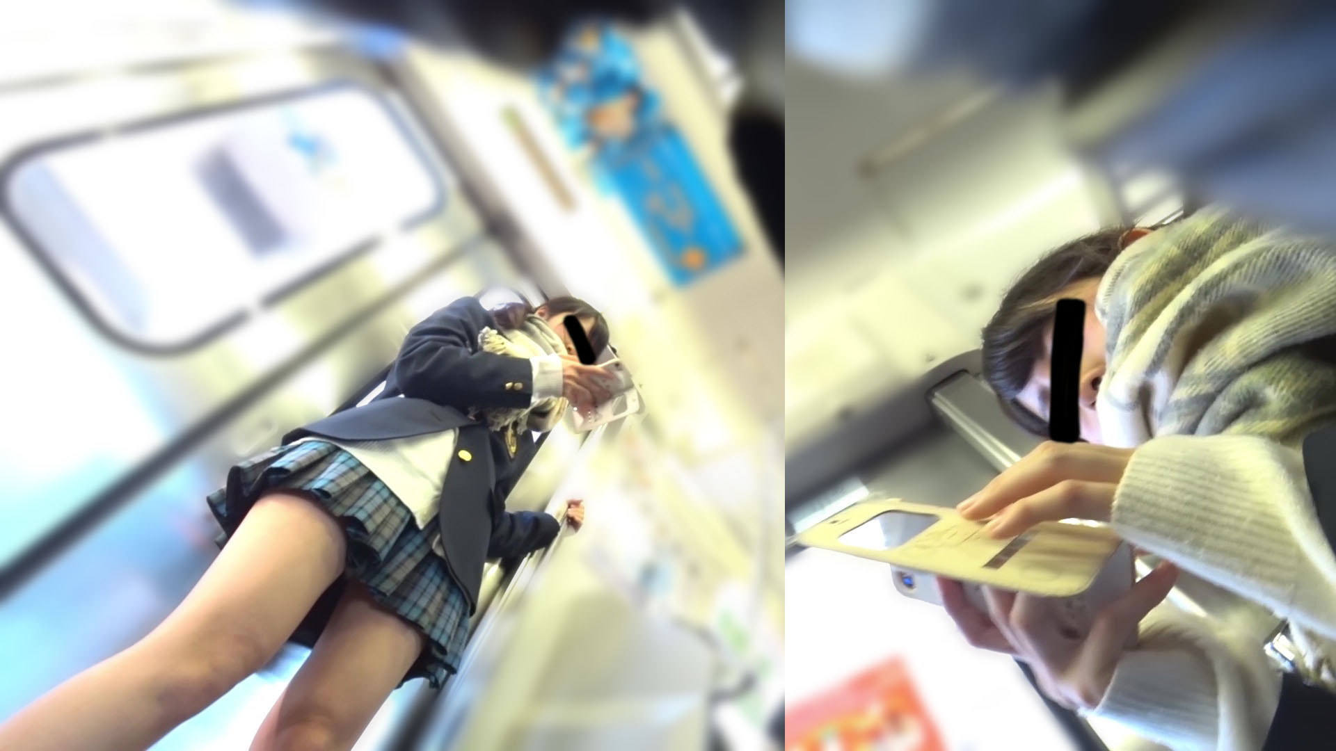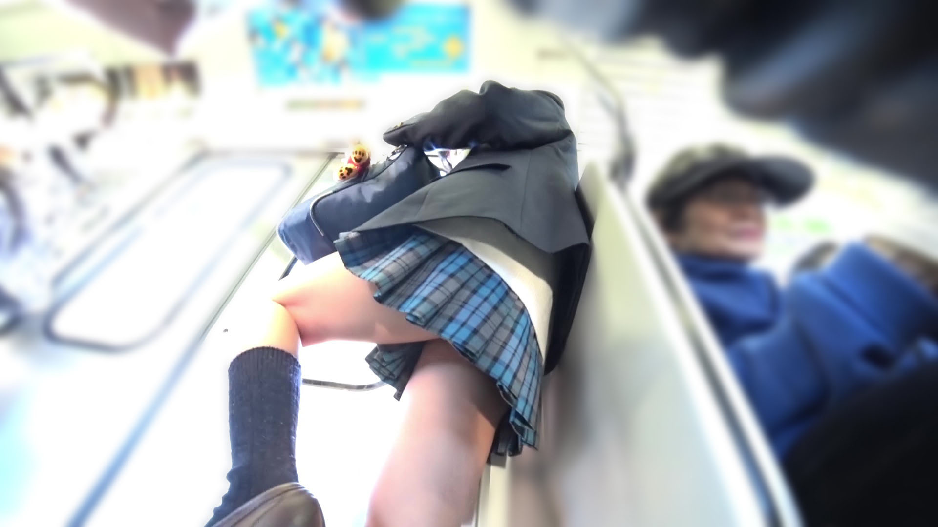 シチュエーションとしては、電車のドア部分にもたれて電車の真ん中部分を向いているので、思いっきり正面下から撮っちゃってます。