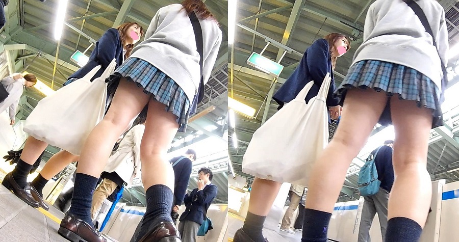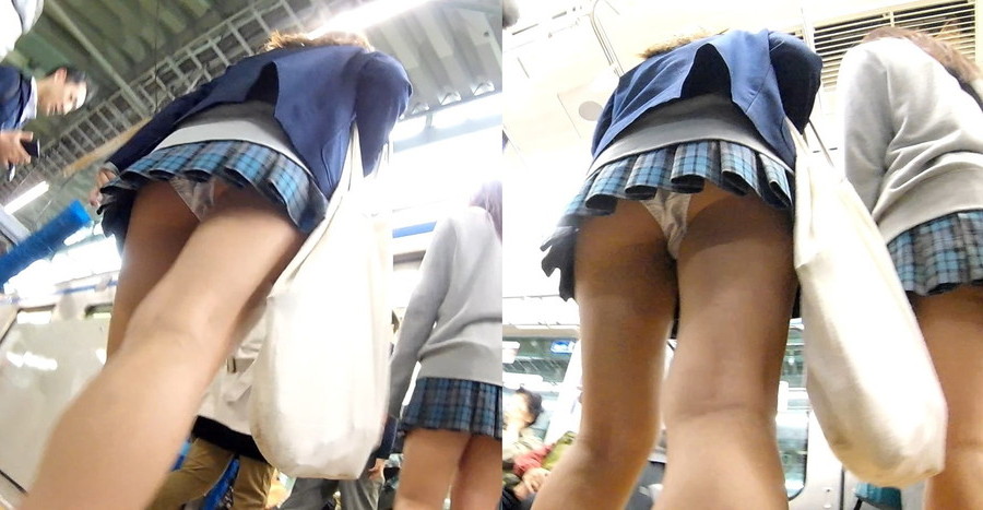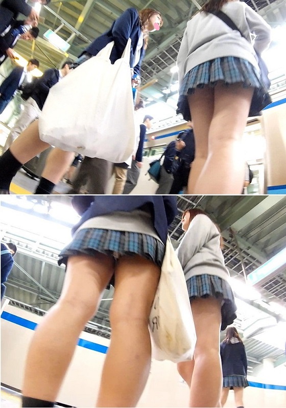電車に乗ったらいいポジショニングにて逆さ撮りになるんですが、一人の子はパンツが白だけどブカブカ?な感じがしています。