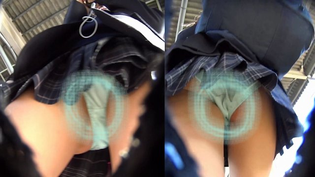 薄いブルーのパンティで制服女子のミニ丈から見えるパンチラ・・・・結構良いです。顔にモザイクがなければ・・・と強く思います。。。