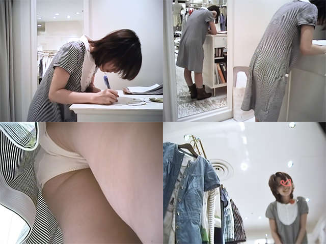 キュロットの店員さんを商品のワンピに着替えさせて逆さ撮り!