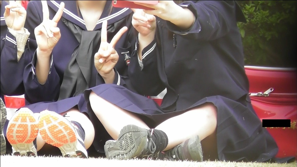 今回は制服女子の三人組が原っぱに座ってだべっていますが、足元がゆるくなったらもちろんパンツが見える・・・・のを収録しています。