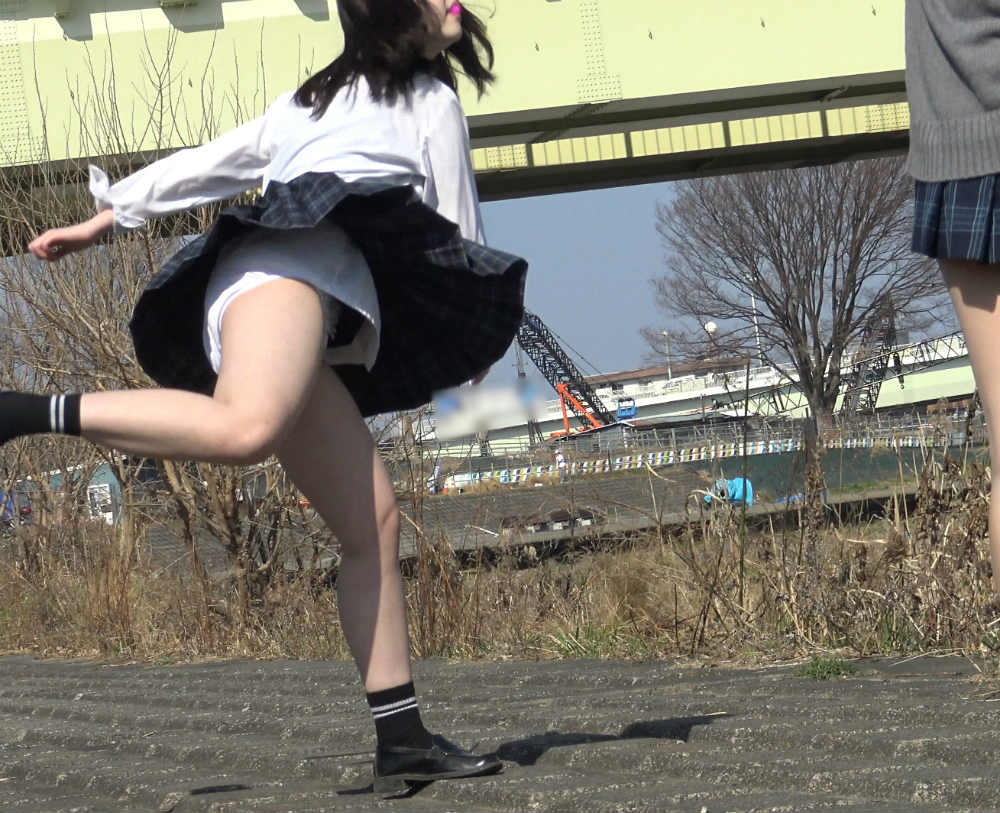色々やらかしているようで・・・(笑)今回は川土手で遊ぶ制服女子達がパンチラを気にせず動き回っているのを撮ったようです。