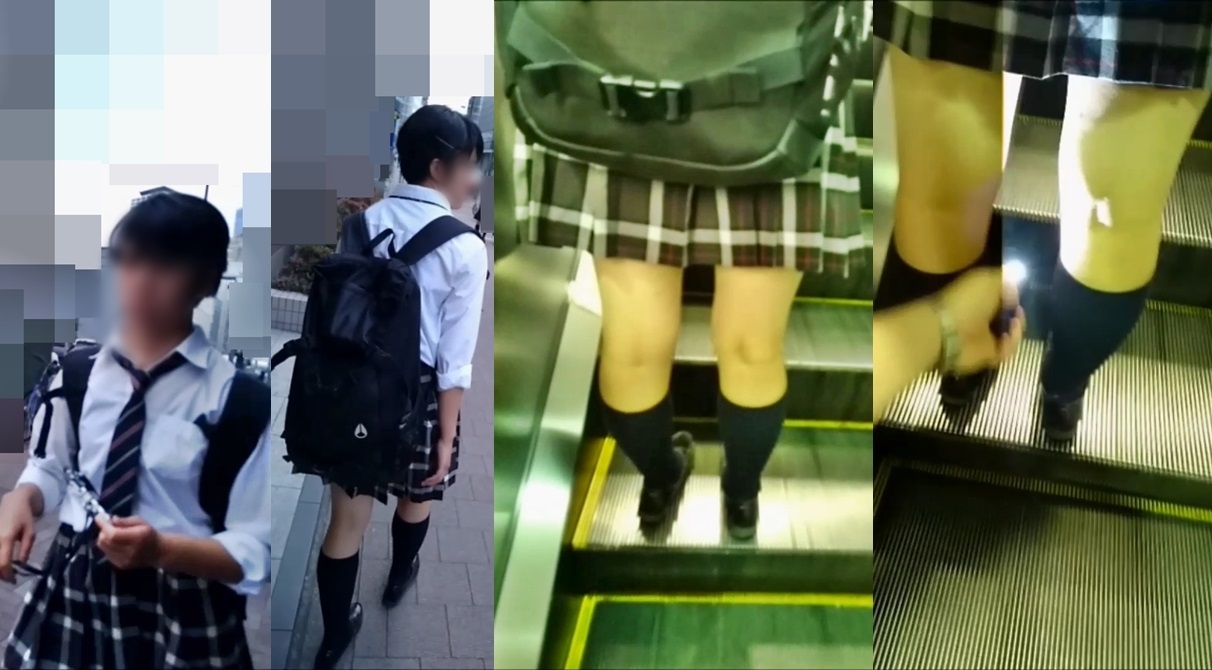 超丈の長いスカートのセーラー服女子と短めのチェックスカートの制服女子の逆さ撮り動画